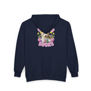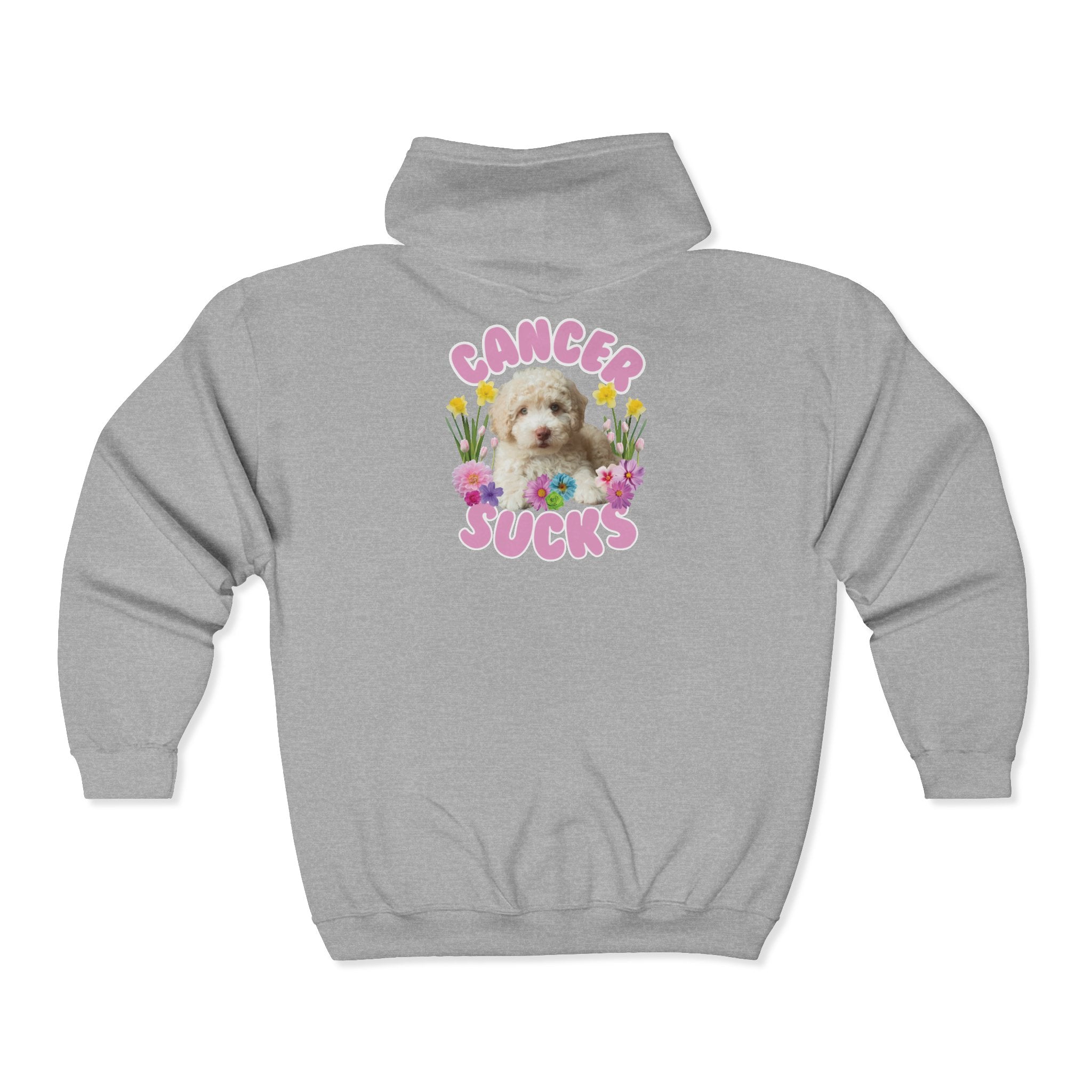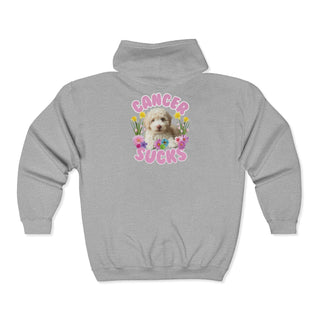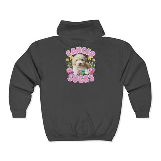 Cancer Sucks Cute Puppy – Floral Dog Cancer Awareness Gift for Survivors, Fighters & Supporters - Zip Up Hoodie
