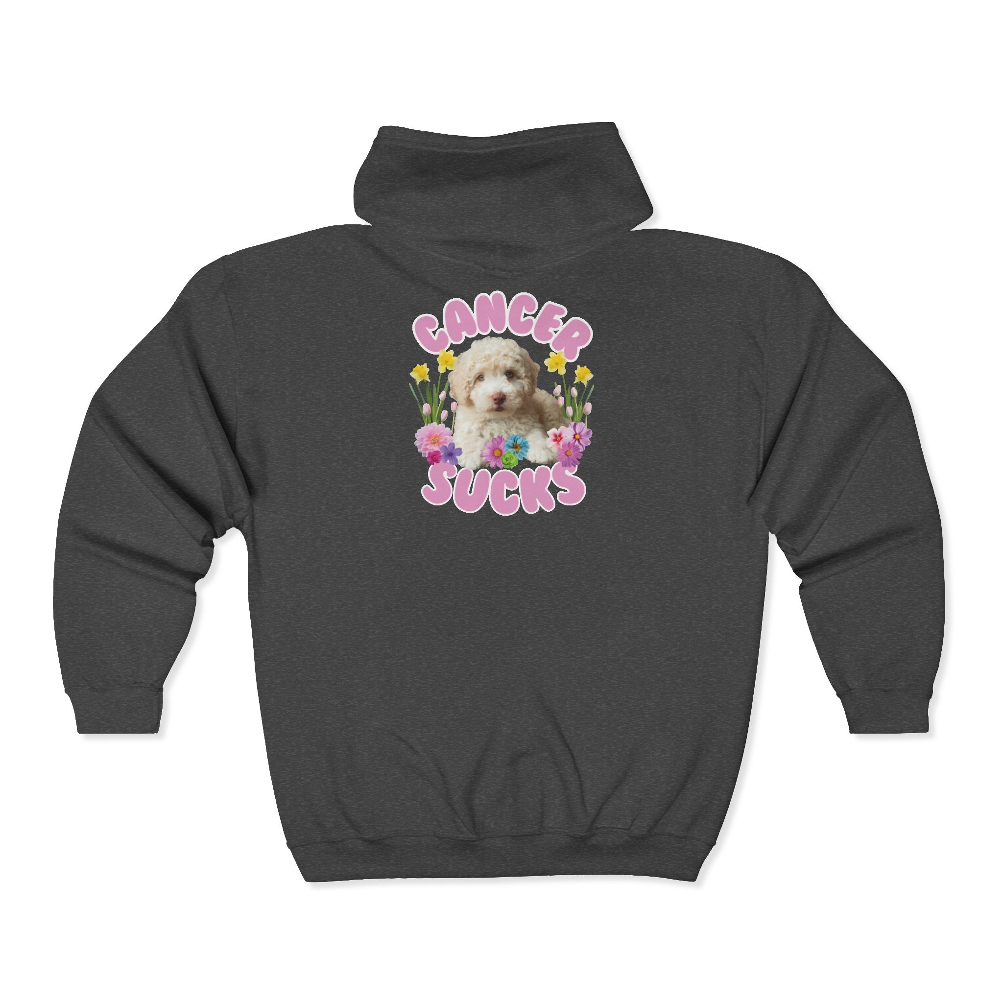 - Cancer Sucks Cute Puppy – Floral Dog Cancer Awareness Gift for Survivors, Fighters & Supporters - Zip Up Hoodie